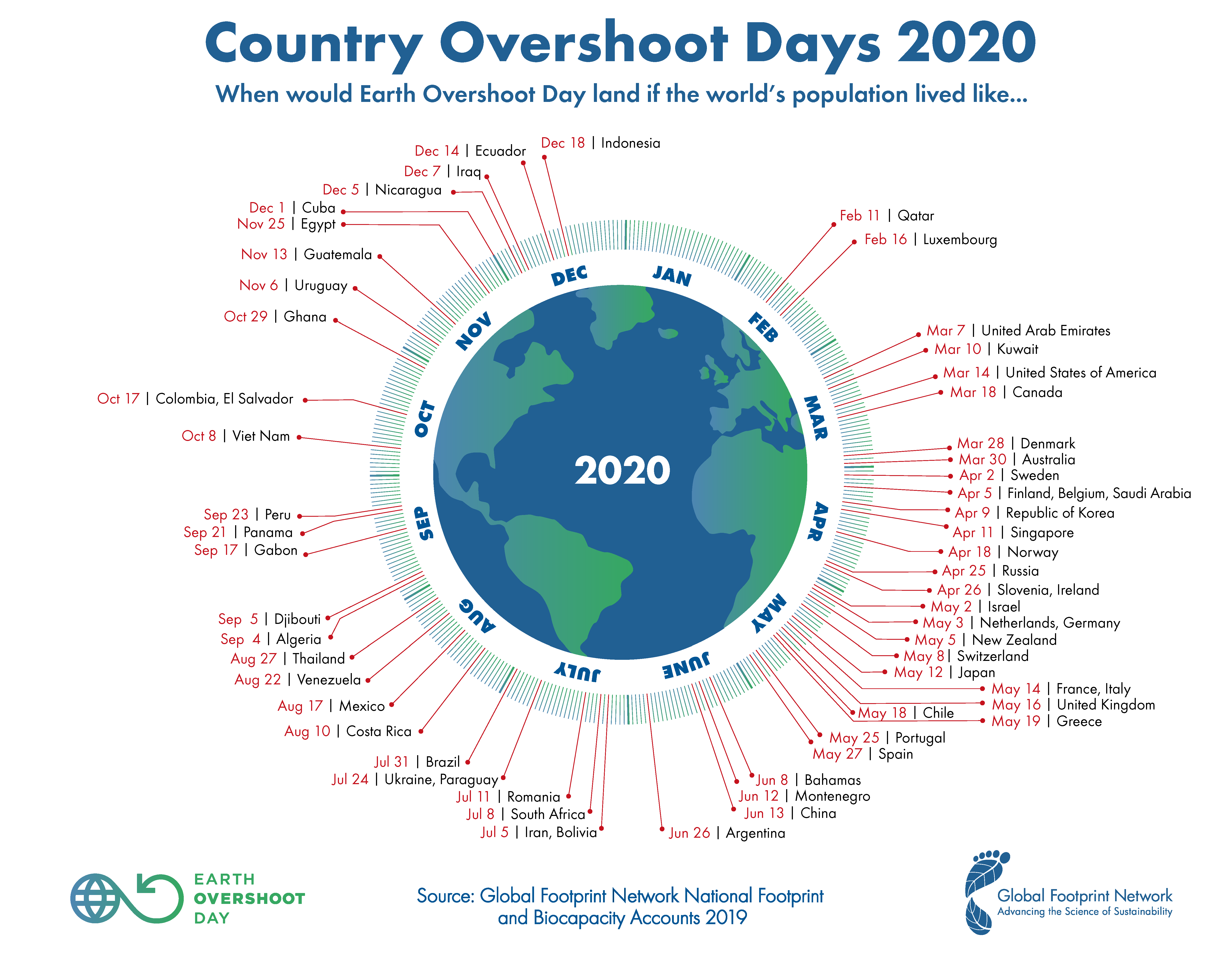 El primer país en sobregirarse este 2020 fue Qatar (11 de febrero), mientras que el último será Indonesia (18 de diciembre).