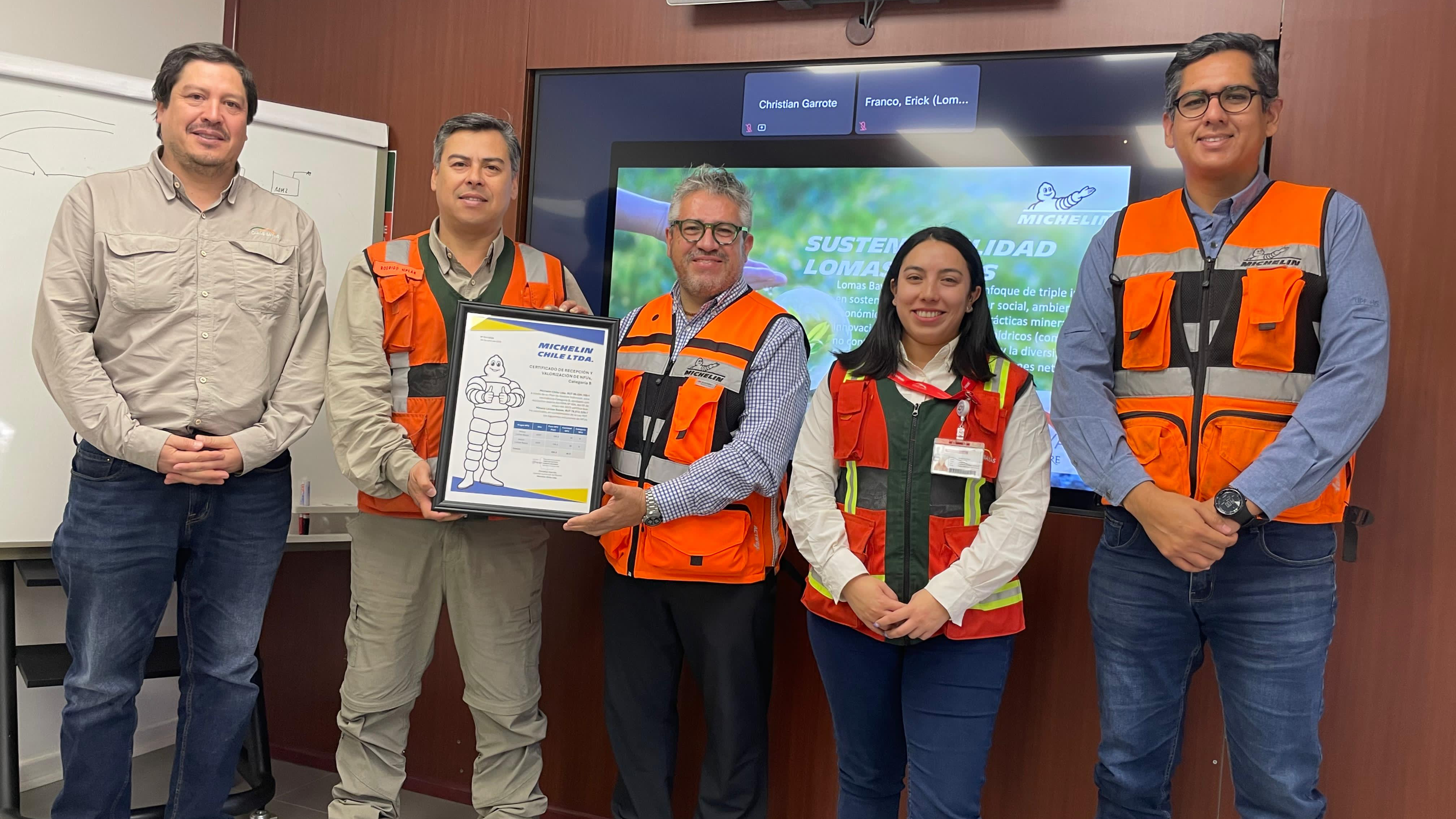 Minera Lomas Bayas recibió el Certificado de Recepción y Valorización de Neumáticos Fuera de Uso (NFUs) categoría B, otorgado por Michelin Chile, que reconoce la gestión responsable de 80 neumáticos equivalentes a 298,8 toneladas durante el período 2023-2024.