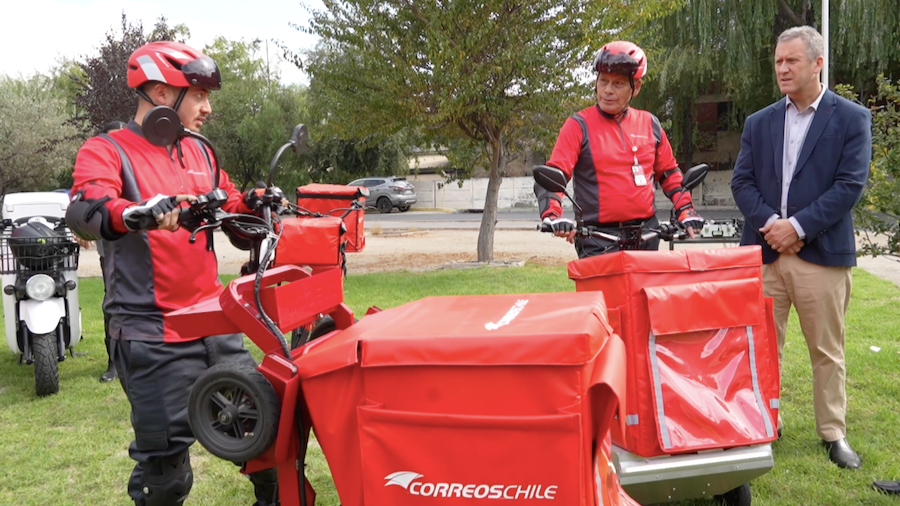 La flota de distribución cero emisiones de CorreosChile está compuesta por más de 2 mil vehículos no contaminantes entre bicicletas, triciclos, scooters y camionetas eléctricas, además carros y bicicletas convencionales. La meta de la empresa es llegar a 2026 distribuyendo el 100% de su carga con este tipo de elementos de reparto.
