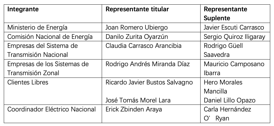 El Comité quedó conformado de la siguiente manera, siendo el presidente Danilo Zurita, jefe del Departamento Eléctrico de la CNE: