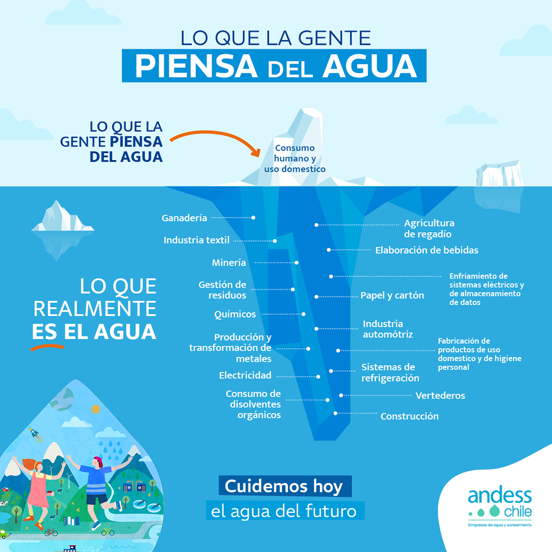 En Chile las empresas sanitarias transforman en agua potable, apta para el consumo humano, agua fresca extraída de diversas fuentes naturales, la que posteriormente transportan y distribuyen hasta cada hogar, comercio o empresa. Esta tarea se complementa con la recolección de las aguas utilizadas mediante los alcantarillados y su descontaminación en sistemas de tratamiento de aguas servidas en instalaciones de tecnología avanzada, para luego restituirlas al medioambiente en condiciones que contribuyan a preservarlo o quedar disponibles para diferentes usos.