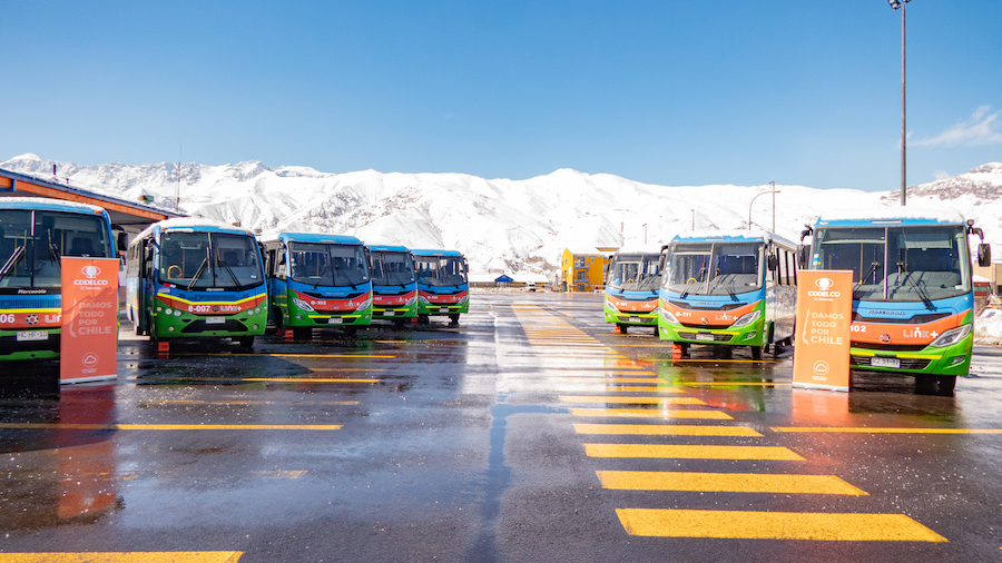 Durante el segundo semestre de 2022, 155 buses eléctricos entrarán en funcionamiento para transportar a trabajadores y trabajadoras de Chuquicamata (45 buses), Andina (7 buses) y El Teniente (103 buses).