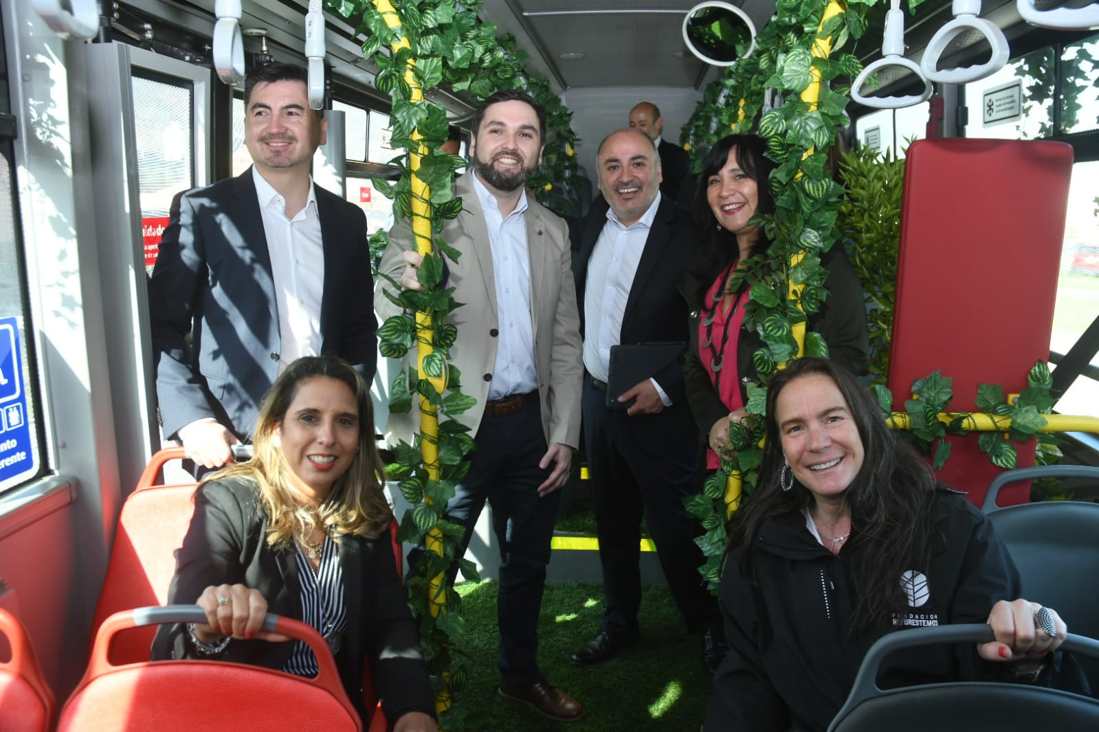 La iniciativa fue presentada este jueves por el subsecretario de Transportes, Jorge Daza, la gerente general de Enel X, Karla Zapata y la directora ejecutiva de la Fundación Reforestemos, Suzanne Wylie. Ocasión en la que se dio a conocer la implementación de un bus 100% eléctrico con biodiversidad en altura, facilitado por la empresa Andes Motor, y que recorrió las calles de Santiago, llamando a la conciencia de los habitantes de la ciudad.