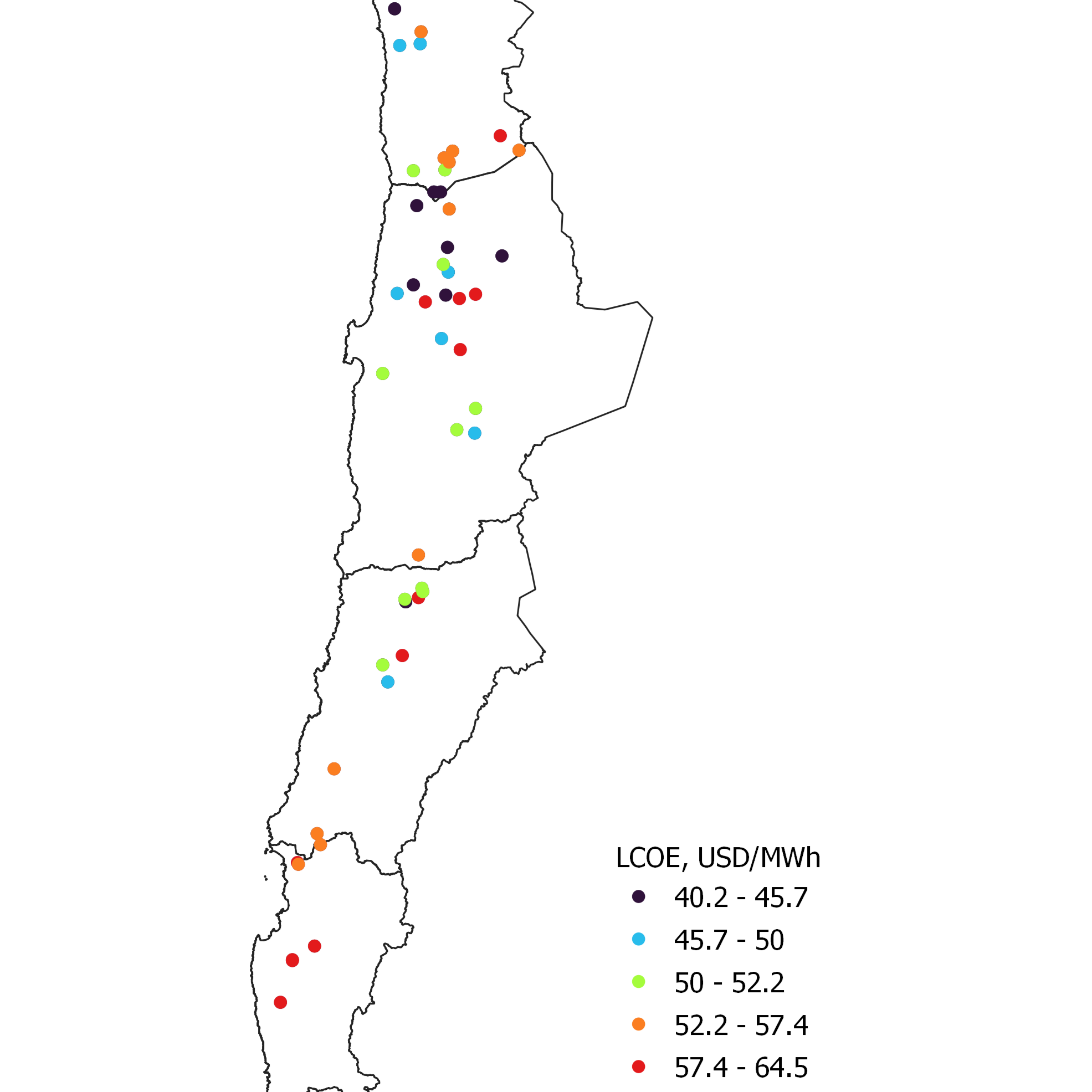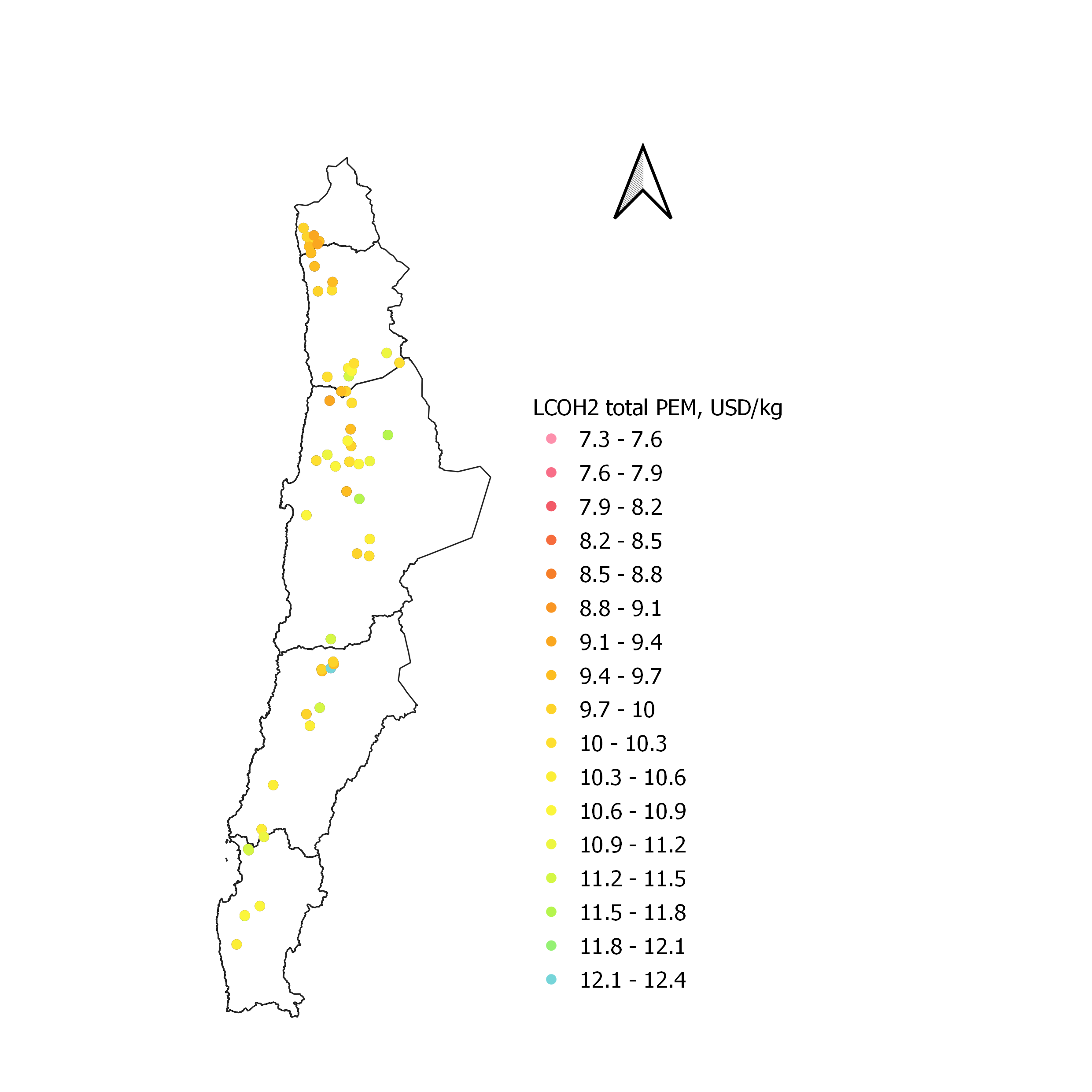 “Los impulsores clave del costo nivelado del hidrógeno son el costo de la electricidad, los gastos de capital (CAPEX) asociado a electrolizadores y el grado de utilización del electrolizador. Si bien la electricidad barata es uno de los impulsores principales, las energías renovables variables sin almacenamiento solo pueden lograr una pequeña capacidad operativa de los electrolizadores. Es decir, menos horas de operación, lo que aumenta la participación del CAPEX en el costo nivelado del hidrógeno (LCOH2)” indica el Investigador Francisco Fuentes, quien destacó que, en este sentido, “la energía fotovoltaica y la concentración solar de potencia representan un complemento ideal para la producción de hidrógeno en lugares que combinan una alta irradiación solar y baja nubosidad como ocurre en ciertas ubicaciones del norte de Chile, como es posible visualizar en los mapas de nuestra plataforma”.