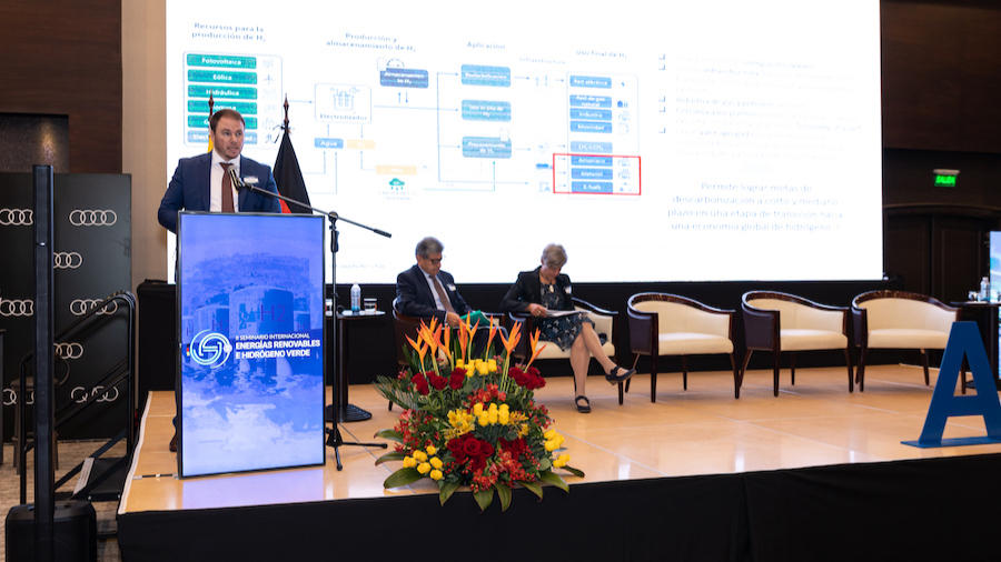 Invitado por la Cámara Ecuatoriano Alemana, la Asociación H2 Ecuador y la Embajada de Alemania en Ecuador, Lars Metkemeyer, Manager for Project and Business Development de Fraunhofer Chile expuso en el "2º Seminario Internacional de Energías Renovables e Hidrógeno" en Quito-Ecuador, ocasión en la que abordó la experiencia con proyectos de hidrógeno verde y Power-to-Liquid, en la industria minera y siderúrgica en Chile y Alemania.
