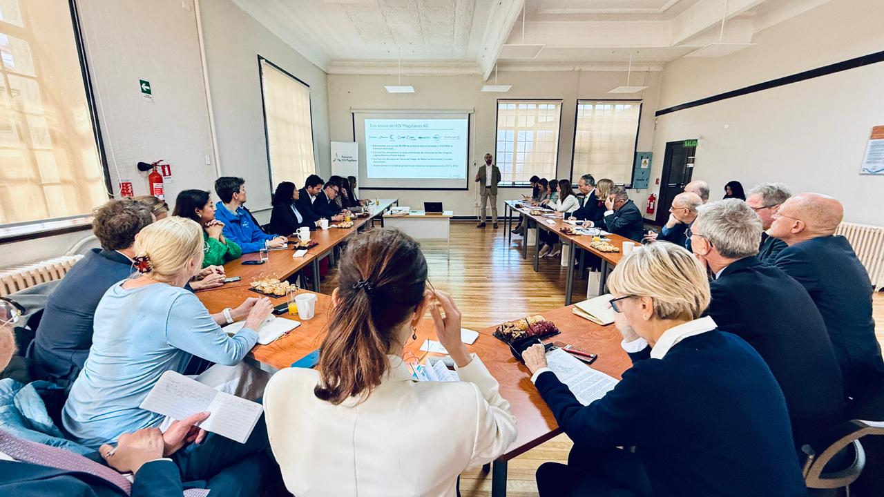 Con el propósito de dialogar sobre los desafíos de la industria del hidrógeno verde en Magallanes y sus derivados, representantes de las empresas miembros de la Asociación Gremial H2V Magallanes se reunieron en Punta Arenas con la Delegación de la Unión Europea en Chile, en el marco de la visita que la delegación diplomática realizó a la región durante la semana pasada.