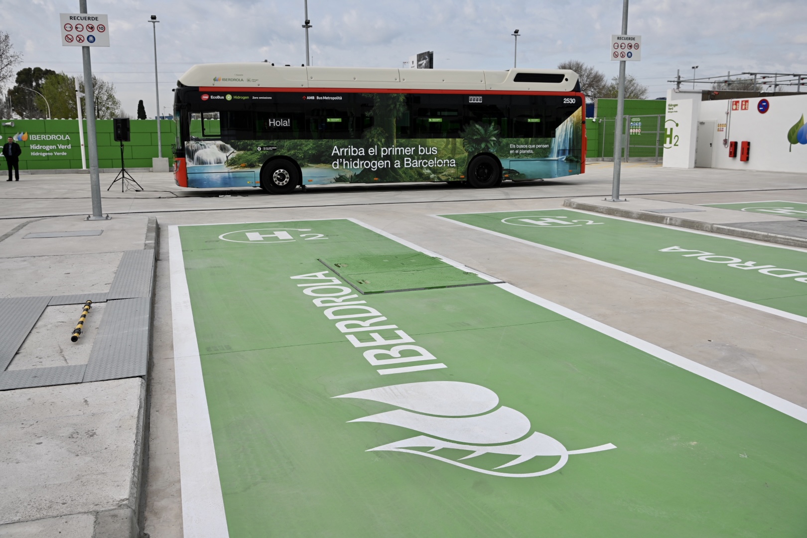 El autobús, que emite únicamente vapor de agua, se abastecerá de hidrógeno verde (unos 20 kilos diarios) en la planta de abastecimiento de Iberdrola, ubicada en el polígono industrial de la Zona Franca de Barcelona.