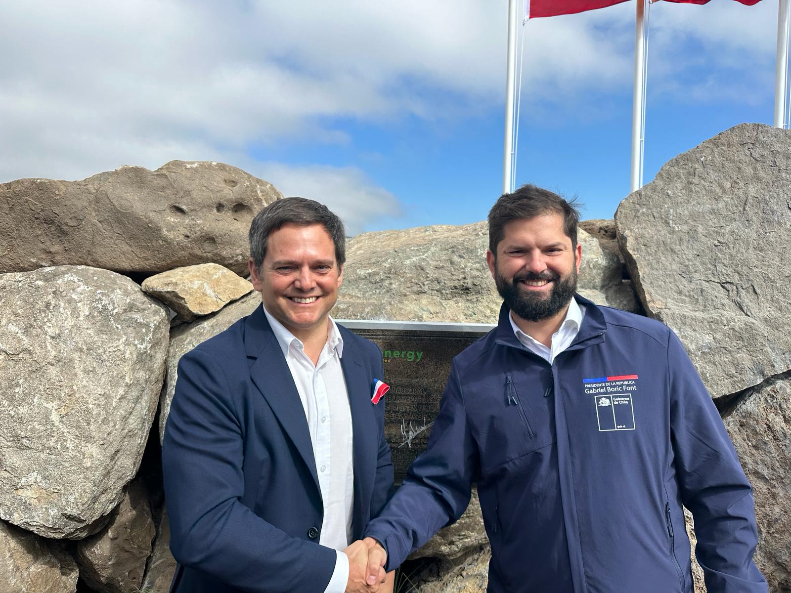 David Ruiz de Andrés, CEO de Grenergy y Gabriel Boric, presidente de Chile, durante la inauguración de Gran Teno.