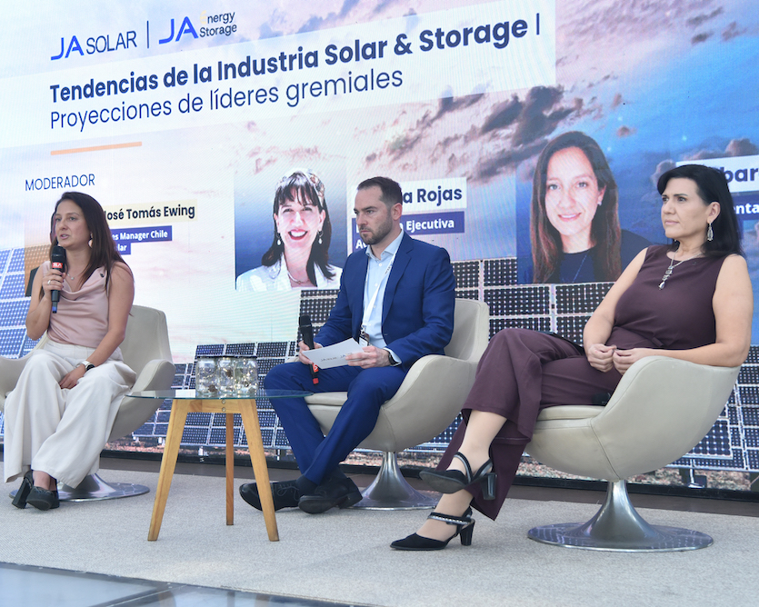 El programa incluyó un espacio de reflexiones gremiales y análisis de las tendencias actuales del sector solar y del almacenamiento energético, a través de un diálogo protagonizado por Bárbara Barbieri, presidenta de ACESOL (Asociación Chilena de Energía Solar), y Ana Lía Rojas, directora ejecutiva de ACERA (Asociación Chilena de Energías Renovables y Almacenamiento). La conversación —moderada por José Tomás Ewing, Sales Manager Chile de JA Solar— abordó los desafíos regulatorios, la creciente demanda por soluciones híbridas y la necesidad de fortalecer la resiliencia energética en la región.