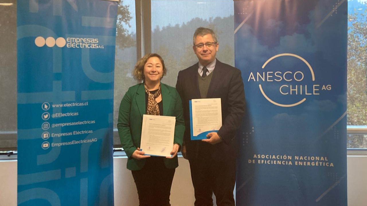 El convenio fue firmado por Roxana Silva, presidenta de ANESCO Chile, gremio que representa a empresas de productos y servicios que ofrecen soluciones de eficiencia energética; y por Andrés Vicent, representante de Empresas Eléctricas AG, gremio que representa a las principales empresas de distribución eléctrica del país.