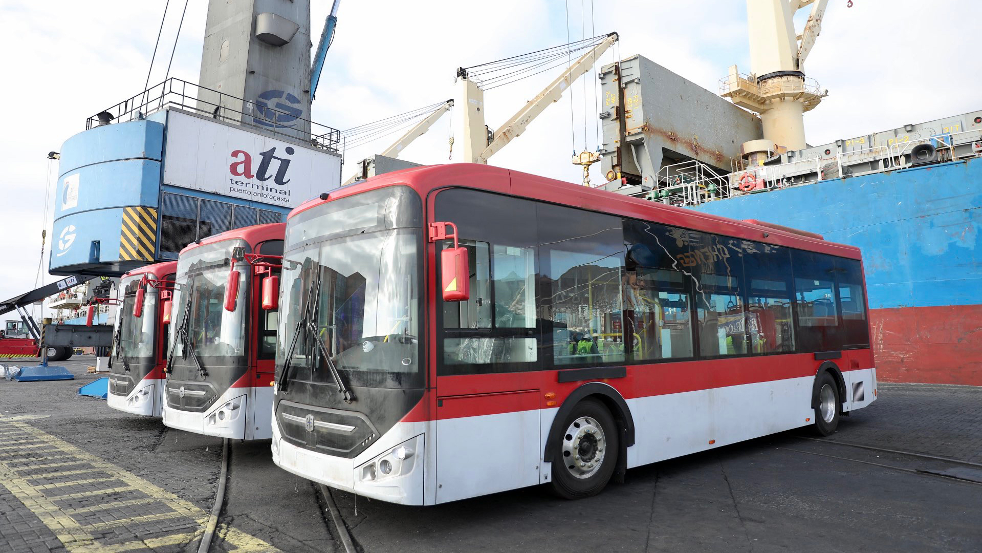 El desembarco de los buses se produjo en el puerto de Antofagasta, donde fueron recibidos por diversas autoridades, entre ellas la ministra Secretaria General de Gobierno, Camila Vallejo, la ministra de Medio Ambiente, Maisa Rojas y el ministro (S) de Energía, Luis Felipe Ramos, además del ministro de Transportes y Telecomunicaciones, Juan Carlos Muñoz.