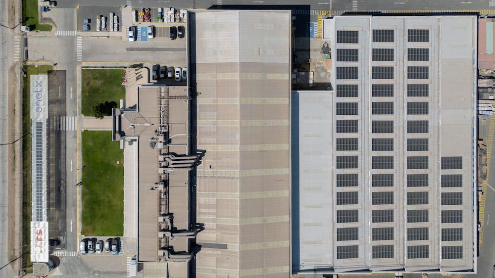 Adicionalmente, Enel X implementó una planta solar fotovoltaica en el techo del edificio corporativo de MTS, de 280 kWp, la que entregará una generación de energía estimada de 406.27 MWh anuales. Moderna infraestructura, que consta de 630 paneles de alta eficiencia de 450 Wp, que incluye un sistema de monitoreo en tiempo real, permitiendo la gestión eficiente de la energía, contribuyendo a la generación de la planta y reduciendo las tarifas por consumo eléctrico.