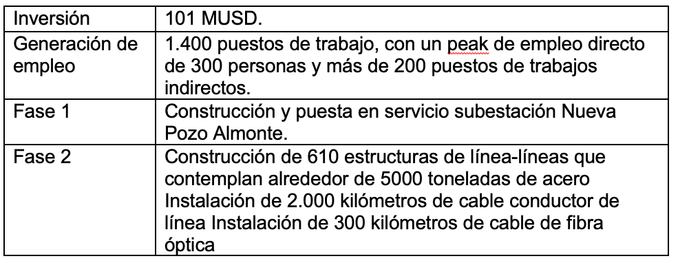 La puesta en servicio de la segunda etapa del proyecto Redenor contempló tres nuevas líneas de transmisión que unen las comunas de Pozo Almonte, Alto Hospicio y Arica, permitiendo robustecer el Sistema Interconectado Nacional.