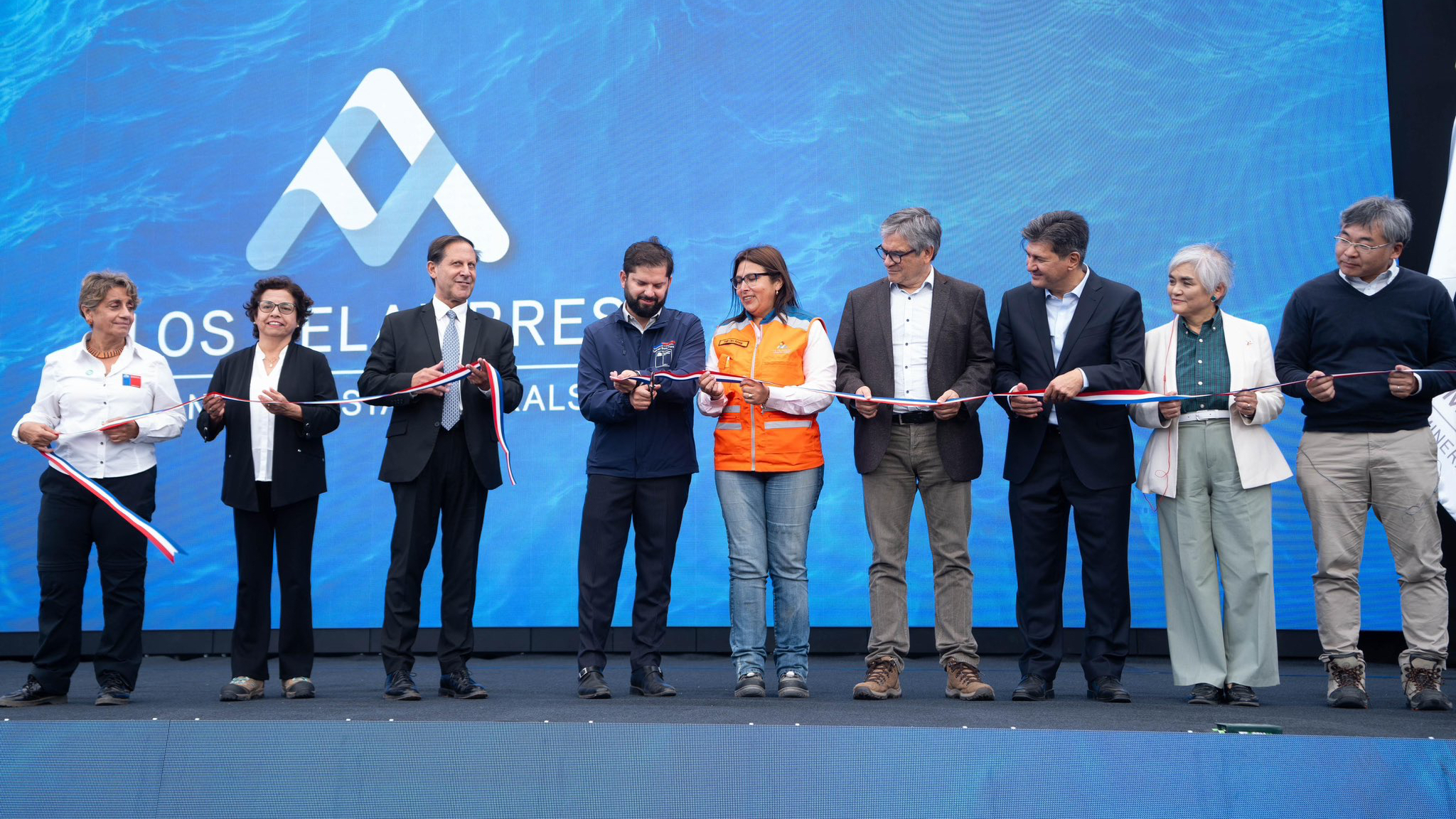 La planta desaladora de minera Los Pelambres fue inaugurada por el Presidente de la República, Gabriel Boric Font, junto a la ministra de Minería, Aurora Williams; la ministra de Obras Públicas, Jessica López; y el ministro de Hacienda, Mario Marcel.