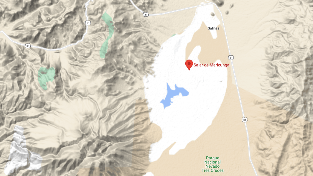 El Salar de Maricunga se ubica a 160 kilómetros al noreste de Copiapó, en la Región de Atacama de Chile, camino al paso fronterizo de San Francisco.