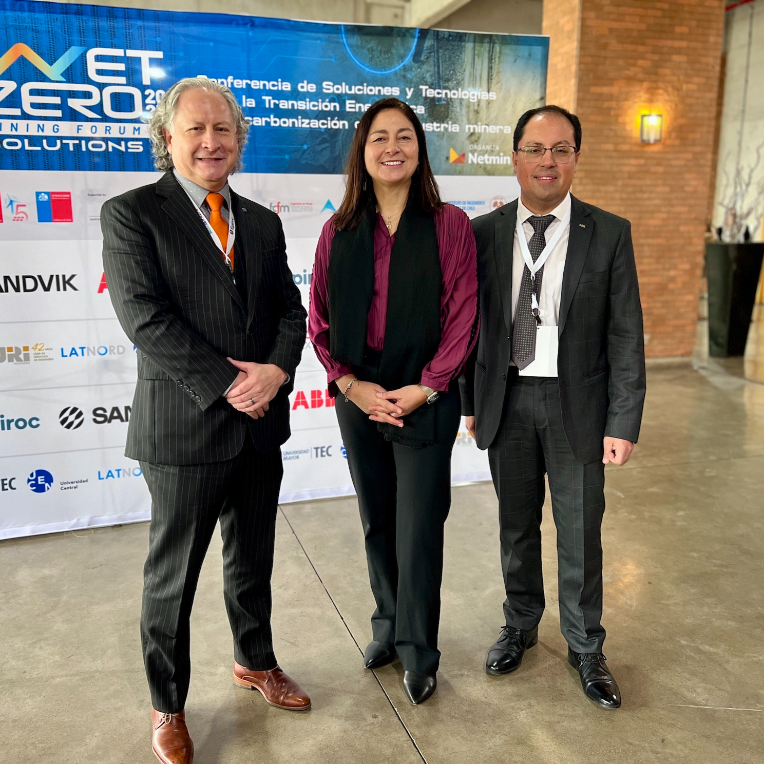 De izquierda a derecha, Carlos Carmona, presidente ejecutivo de Net Zero Mining Forum Solutions 2025, Verónica Cortez, Compañía Minera Doña Inés de Collahuasi y Javier Meza, Digital Sales Manager de ABB en Chile