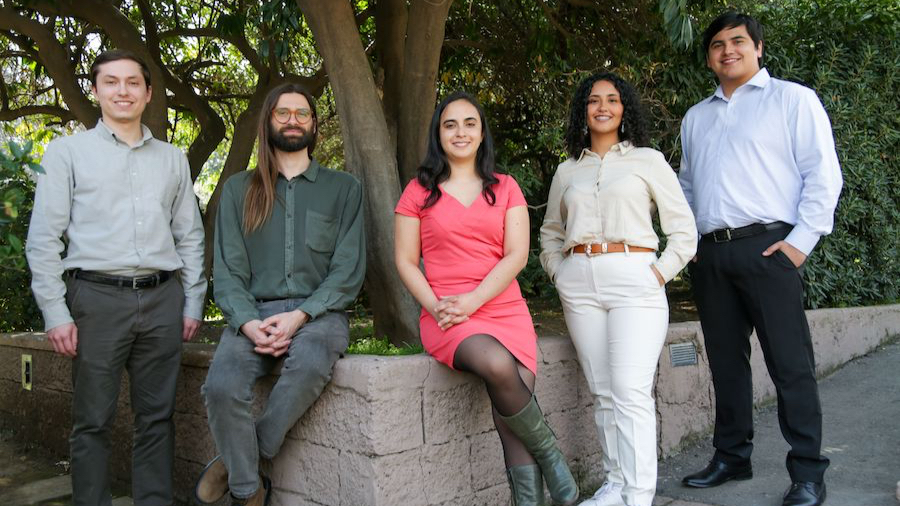 En la fotografía de izquierda a derecha: Nicolás Durán (Ingeniero Machine Learning), Pedro Correa (Gerente Tecnología), Constanza Levicán (Gerente General), Stefany Castillo (Desarrolladora Op. Comerciales), César Muñoz (Desarrollador de Software).