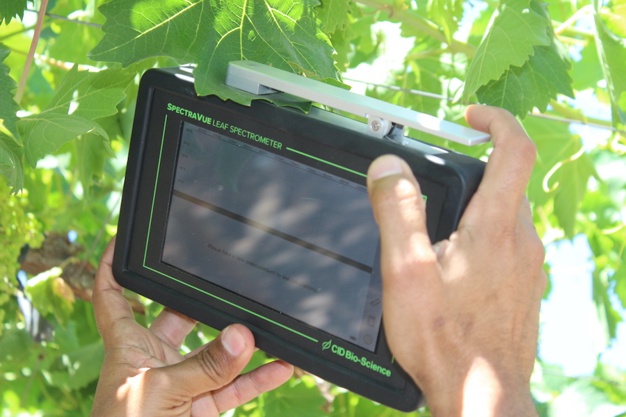 El Espectrómetro se está usando en los predios de uva de mesa para optimizar la fertilización, asegurando que las plantas reciban los nutrientes necesarios. Este instrumento mide la reflectancia de la luz en diferentes longitudes de onda, es decir, analiza la composición espectral de la luz reflejada por las plantas lo cual está estrechamente relacionado con los niveles de nutrientes presentes en la hoja. También la medición de la reflectancia en el infrarrojo cercano puede ayudar a evaluar el contenido de agua en el suelo y en las plantas.