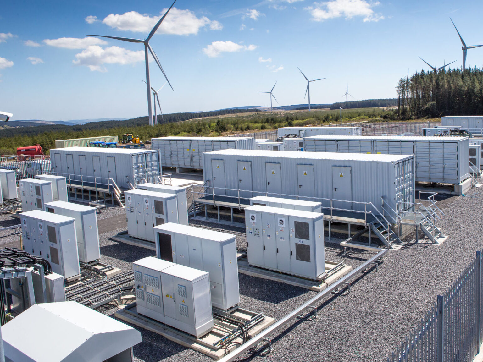Por su parte, las baterías de almacenamiento logran acumular una mayor cantidad de energía que es liberada a la red por un tiempo mucho más prolongado. Generalmente cuando se utilizan este tipo de baterías los condensadores sincrónicos no suelen activarse, porque la disponibilidad energética dentro de las baterías es constante, lo que asegura que la red de transmisión mantenga un servicio estable cuando la fuente energética natural no esté activa.