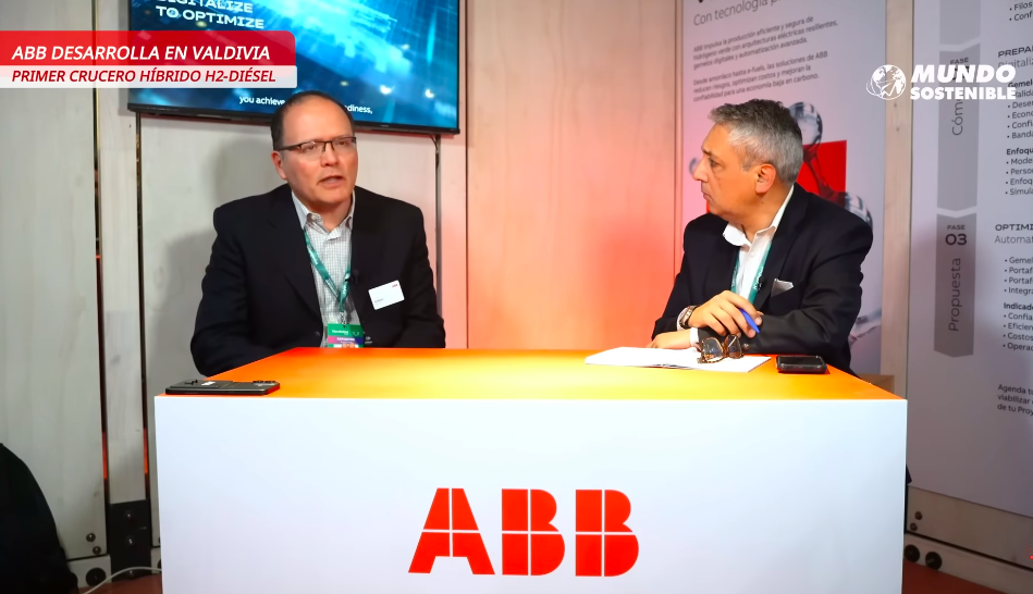 Emiliano Burgos (izquierda), gerente regional de Ventas y Negocios para América en Descarbonización y eficiencia energética de buques y puertos, de ABB en Chile.