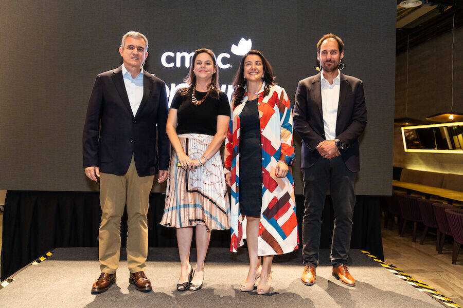 Desde la izquierda: Francisco Ruiz-Tagle, gerente general de CMPC; Bibiana Rubini, gerente de I+D y Bioeconomía de CMPC; Bernardita Araya, gerenta de CMPC Ventures; y Felipe Alcalde, gerente de Competitividad e Innovación de CMPC.