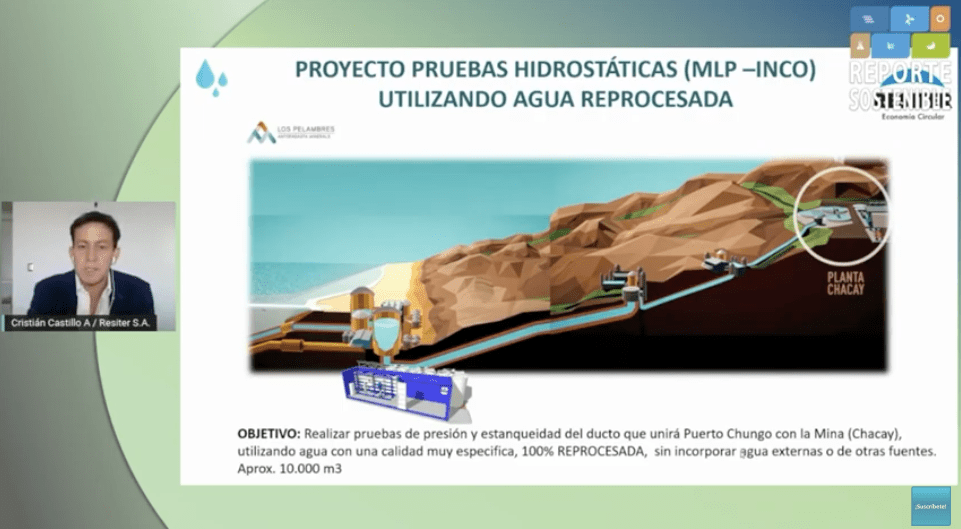 Una completa revisión sobre el uso de agua en la minería realizó el gerente de la División Recursos Hídricos de Resiter, Cristián Castillo, durante la 3ª Conferencia Sostenibilidad para la Industria Minera, organizada por Reporte Sostenible, en el marco de la antesala al mes de la minería.