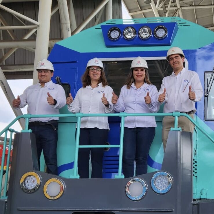 Delegación encabezada por Katharina Jenny Arroyo, gerenta general de FCAB; Milton Kellemen García, gerente de Administración y Finanzas; Paulina Arriaza Toro, jefa del Departamento de Tecnología e Innovación y José Luis Adasme, jefe de la Unidad de Ingeniería, pudieron conocer en China el prototipo de la locomotora que fue adquirida por FCAB.