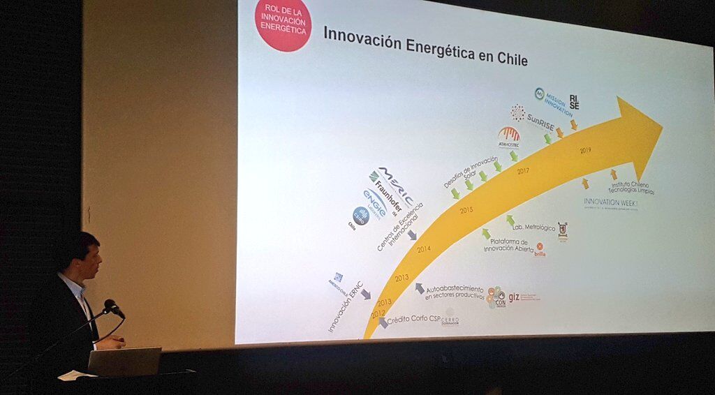 El segundo proyecto destacado corresponde a una planta de Concentración Solar de Potencia de baja escala, que busca reducir los costos respecto a una planta tradicional (Cerro Dominador es la única en su tipo en Latinoamérica a gran escala). “Este genera un ciclo térmico con almacenamiento que permite operar procesos de calor incluso durante la noche, permitiendo generar energía 24/7”, indicó Andrés Bosch, encargado de la planta piloto que se ubica en Quilicura.