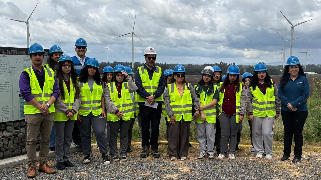 La iniciativa impulsada por la Seremi de Energía del Biobío junto a Innergex Energía Renovable permitió que alumnas del Liceo Industrial de Los Ángeles conocieran en terreno el proceso de generación eólica y la importancia de las energías limpias con enfoque de género.