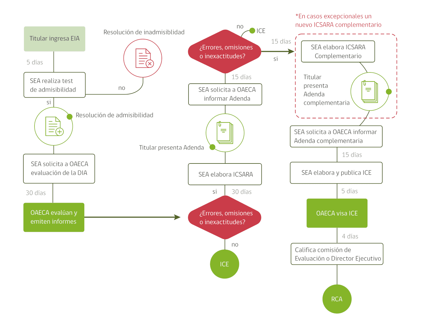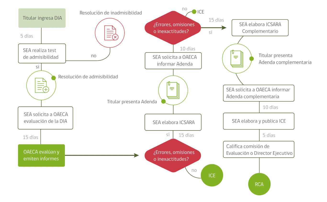 Si es una DIA, hay un plazo de 60 días hábiles para la evaluación, ampliables a 90 días hábiles. Si el trámite es un EIA, son 120 días hábiles ampliables a 180 días hábiles.